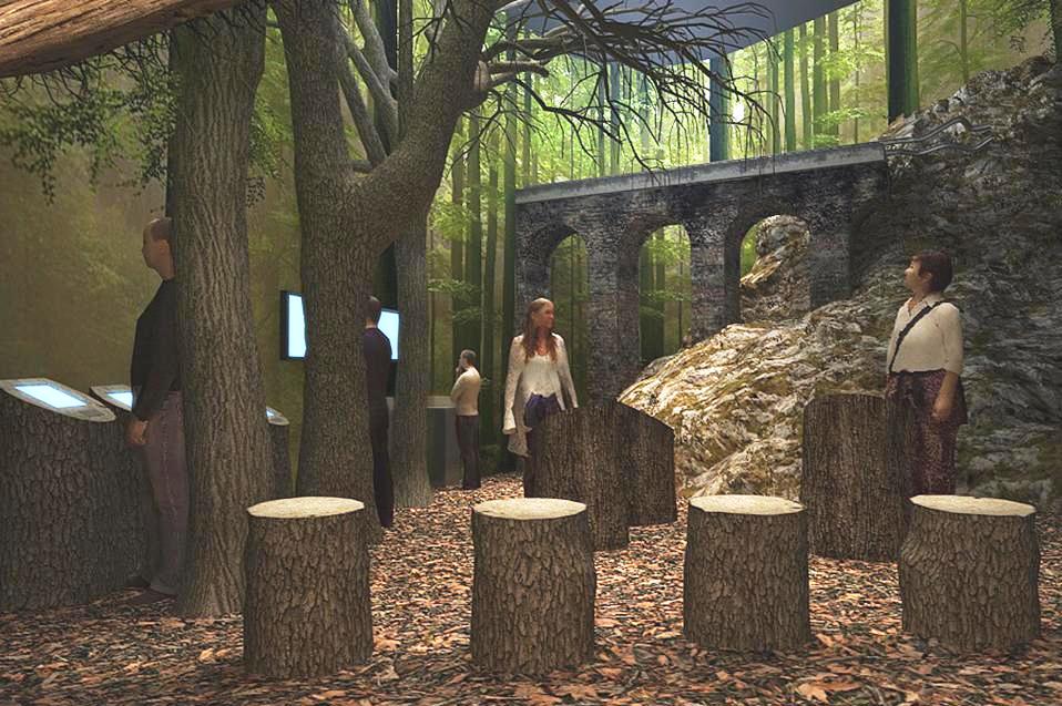 מיצג "העולם במלחמה", המוביל במסדרון ספירלי אל אולמות התצוגה.
