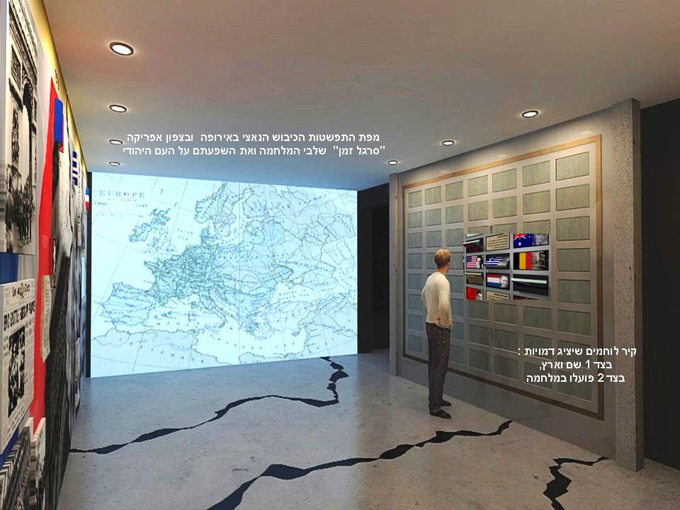 1. המבואה - אשר מכניסה את המבקר לנושא, לאווירת המלחמה והמפגש עם דמות הלוחם היהודי, דרך "מעלית הזמן"