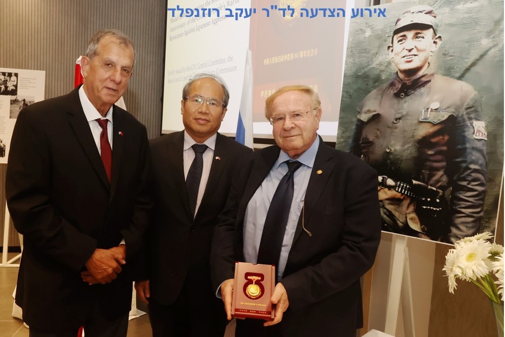 בטקס מרשים שנערך ב-27.8.2025, במוזיאון הלוחם היהודי במלחמת העולם השנייה, ע"ש הנשיא חיים הרצוג, הוענקה מדליית הערכה מטעם ממשלת סין, באמצעות שגרירה בישראל - ה"מ שיאו ג'ון-ג'נג לאחיינו - ד"ר מנשה רוזנפלד.