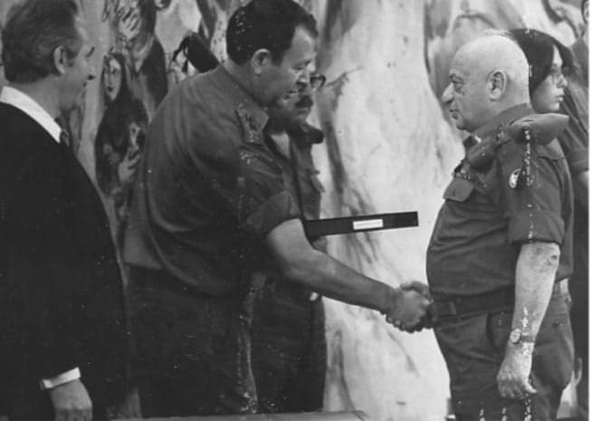 מקבל את עיטור העוז מהרמטכ"ל מוטה גור ושר הביטחון שמעון פרס